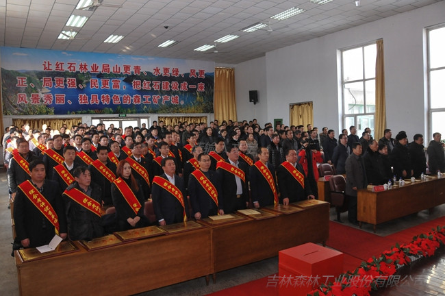 在民主測評局領(lǐng)導(dǎo)班子及成后,紅石林業(yè)局 紅石林業(yè)分公司2016年工作會議暨七屆四次職代會完成全部議程,在激昂的《集團之歌》的歌聲中勝利閉幕。