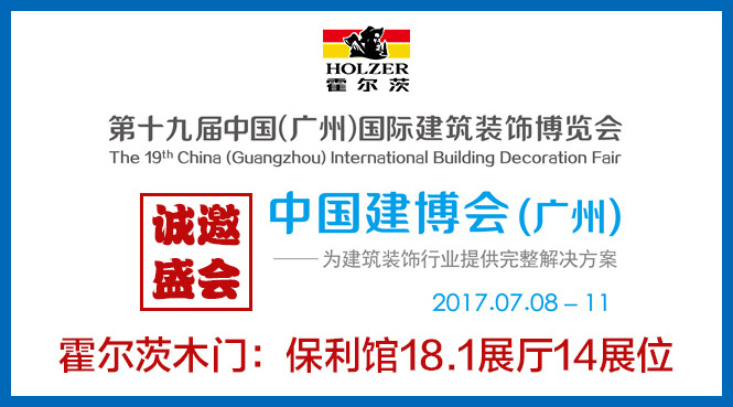 7.8-11的廣州建博會上,就在保利館18.1-14展位,希望更多經(jīng)銷商與消費者的蒞臨,讓更多的人體驗時尚、隔音、環(huán)保的霍爾茨T型門。