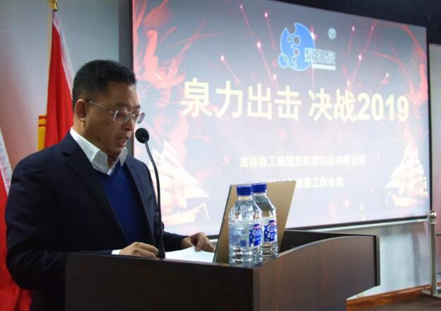 2019年1月6日至7日,以“泉力出擊·決戰(zhàn)2019"為主題的吉林森工集團(tuán)泉陽泉飲品有限公司年度銷售總結(jié)暨動(dòng)員大會(huì)在泉陽泉長春總部盛大舉行!本次大會(huì)不僅是所有泉陽泉人的年終總結(jié),更是展望2019年的動(dòng)員大會(huì)!在以總經(jīng)理安英斌先生、黨委副書記張君先生、副總經(jīng)理位俊濤先生為代表的領(lǐng)導(dǎo)班子的指揮動(dòng)員下,各職能部門負(fù)責(zé)人以及各大區(qū)銷售團(tuán)隊(duì)齊聚于此,一同見證了泉陽泉的年度盛事。