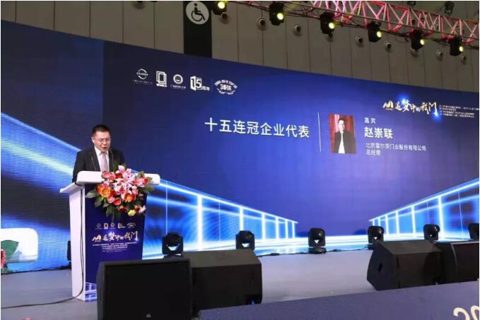 憑借對產(chǎn)品的堅持、對環(huán)保的堅持、對發(fā)展的堅持,本次大會中,北京霍爾茨門業(yè)股份有限公司連續(xù)15年獲得“全國市場、工程木門企業(yè)產(chǎn)品質(zhì)量、售后服務(wù)雙承諾活動單位”獎項?;魻柎拈T業(yè)總經(jīng)理趙崇聯(lián)趙總上臺領(lǐng)獎,并作為連續(xù)15年獲得“木門三十強”企業(yè)的領(lǐng)軍人物,發(fā)表了講話。