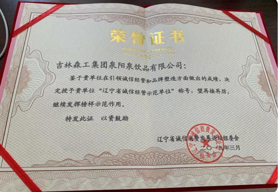 為了更好地貫徹落實(shí)習(xí)近平總書記在民營企業(yè)家座談會(huì)上的講話精神,以“保質(zhì)保量、誠信經(jīng)營、綠色消費(fèi)”為主題,樹立一批“講誠信,負(fù)責(zé)任,守法紀(jì)”的先進(jìn)典型。為企業(yè)與企業(yè)之間、企業(yè)與單位之間、企業(yè)與消費(fèi)者之間搭建了一個(gè)很好的交流、合作平臺(tái)。在此次論壇中,吉林森工集團(tuán)泉陽泉有限公司榮獲“遼寧省誠信經(jīng)營示范單位”榮譽(yù)稱號(hào)。