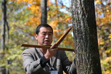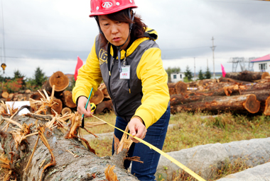 技能考試安排在9月24日、25日兩天進行,共在貯木場、汽運處、供電處、帽山林場四個分賽場設有原木鑒定、原條驗收、原條量材、電動絞盤機、運材汽車司機、電工、油鋸工、集材拖拉機司機、森林調查工十個競賽科目。比賽現(xiàn)場,參賽選手嚴謹認真,一絲不茍,多年來在工作中積累的經(jīng)驗,在比賽現(xiàn)場得以充分展示。在貯木場原條量材設計賽區(qū),不同樹種、不同徑級的原條,在選手的精心設計下,被合理利用,選手們以追求木材高產(chǎn)值、高效益的意識,嚴謹?shù)墓ぷ鲬B(tài)度博得現(xiàn)場裁判的肯定。在帽山林場,油鋸手、集采拖拉機司機和森林調查員,在規(guī)定區(qū)域同臺競技,他們敏捷的步伐、嫻熟的技術博得陣陣歡呼,嘹亮號樹聲響徹山林。汽運處,供電處賽場的比賽也在選手的積極參與中有序進行。