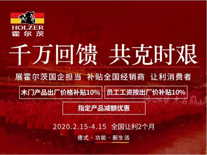 疫情之下,企業(yè)任何一個動作都會被無限放大,而比以往更大的優(yōu)惠政策和活動力度也會贏得廣泛稱贊。2020年2月15日-4月15日,霍爾茨三款木門12-21、18-89、18-21推出減免活動,客戶只需在霍爾茨官網領取300元補貼券便可享受實實在在的減額優(yōu)惠。線上線下同步使用,真金白銀的補貼力度看得見,霍爾茨大力度減額之下是對客戶的讓利,更是在嚴峻的市場環(huán)境之下將霍爾茨濃厚的人文關懷理念深入客戶內心。
