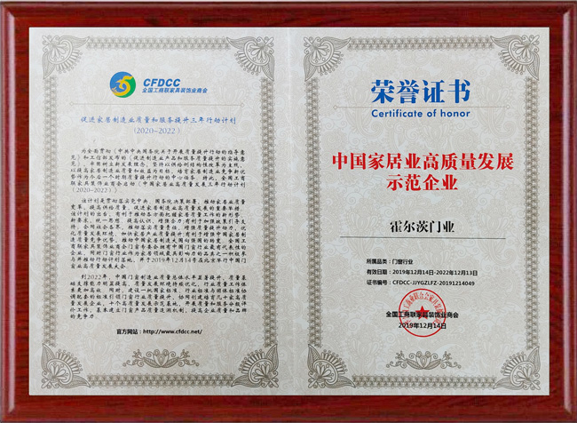 北京霍爾茨家居科技有限公司憑借在木門領(lǐng)域的杰出貢獻(xiàn),獲頒 “中國(guó)家居業(yè)高質(zhì)量發(fā)展示范企業(yè)”榮譽(yù)。這并不是霍爾茨多年來(lái)收獲的唯一獎(jiǎng)項(xiàng),僅2019年,霍爾茨就捧回了“品牌創(chuàng)新獎(jiǎng)”、“中國(guó)家居冠軍榜匠心制造品牌”、“中國(guó)家居影響力品牌”、“中國(guó)門窗匠心品牌”、“中國(guó)木門行業(yè)定制領(lǐng)導(dǎo)品牌”、“中國(guó)木門行業(yè)創(chuàng)新獎(jiǎng)”、“金星獎(jiǎng)”、“金木匠獎(jiǎng)”等二十余座大獎(jiǎng),均由家居相關(guān)權(quán)威組織機(jī)構(gòu)、家居行業(yè)主流媒體等層層篩選頒發(fā)。